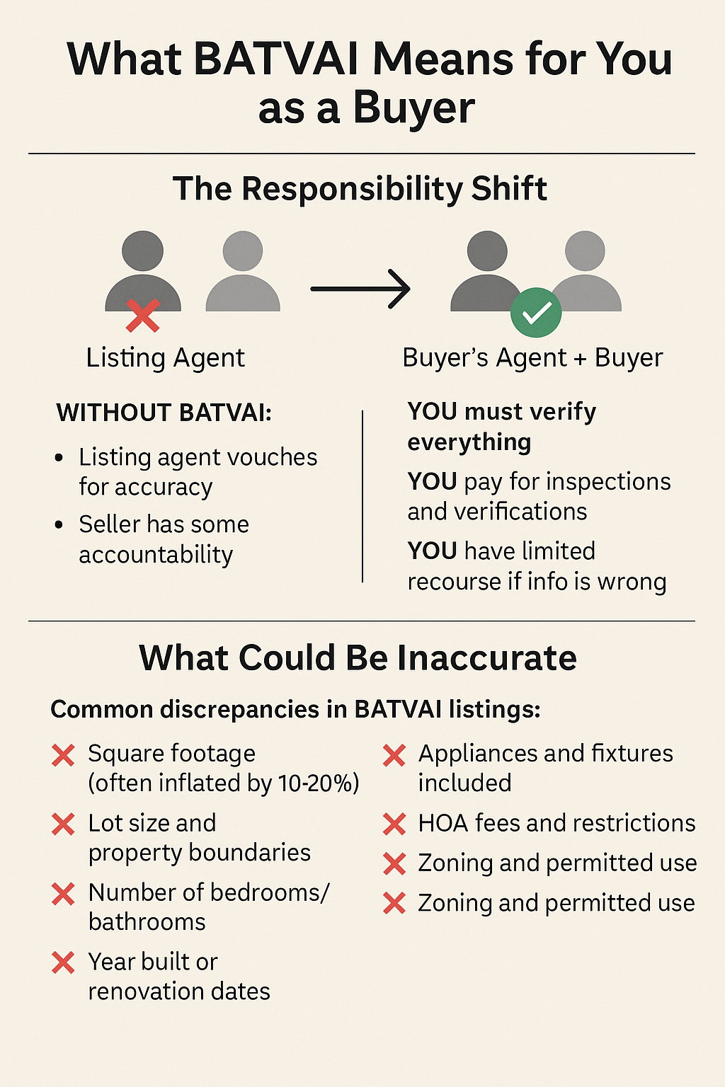 BATVAI exists to protect listing agents, not buyers. Your protection comes from:
